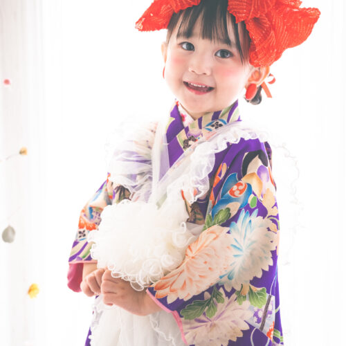 近代的なスタイルでお子様の魅力を引き立てる「新しい七五三」は髪形や襟、レース被布などをアレンジさせて頂きます。