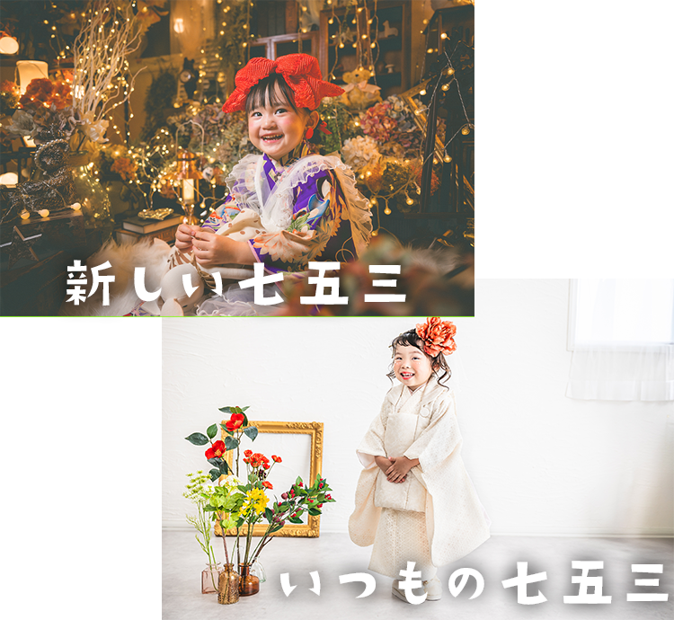 千葉県千葉市で子供ハウス写真スタジオを営んでいる101の七五三は「新しい七五三」と「いつもの七五三」から選ぶことが出来ます。