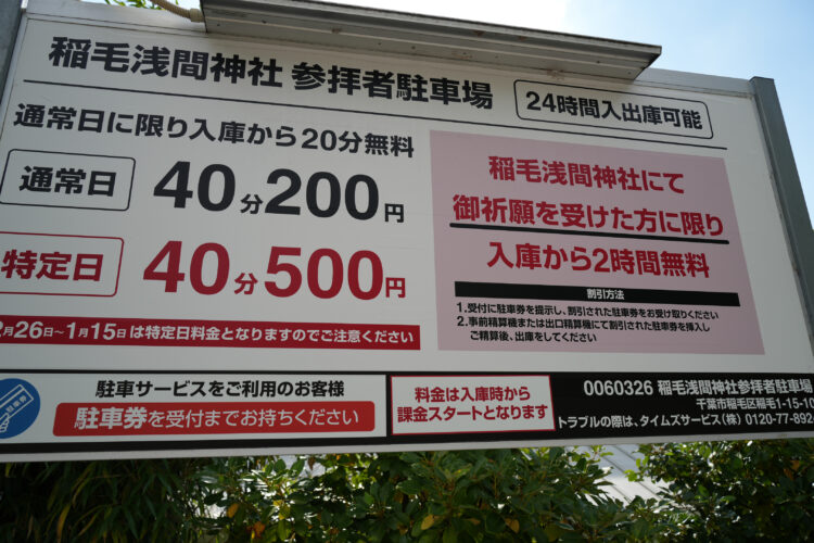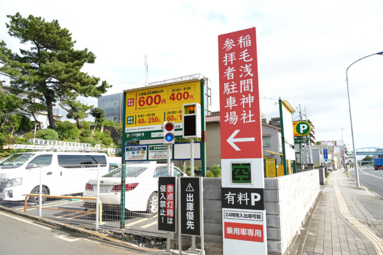 東京方面からの場合は、首都高速湾岸線の湾岸習志野ICまたは千葉北ICを下車し、国道16号線・県道14号線を経由して稲毛区方面へ向かいます。駐車場は神社周辺にあり、無料または有料の駐車スペースが複数用意されています。ただし、七五三や祭礼期間などの混雑時は満車の可能性もあるため、早めの到着や事前確認をおすすめします。