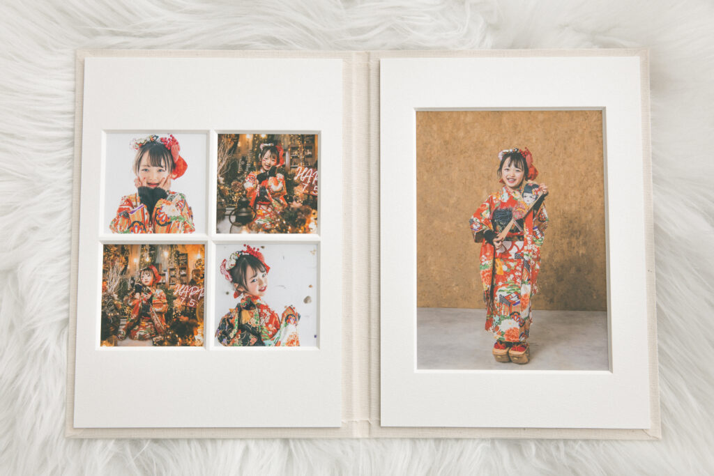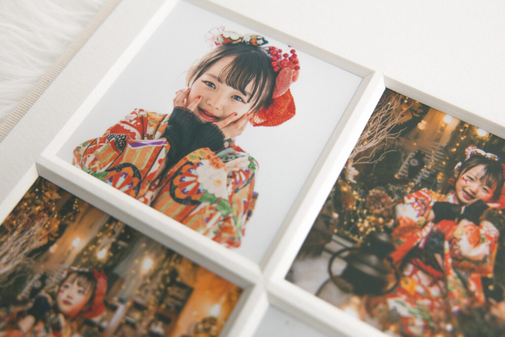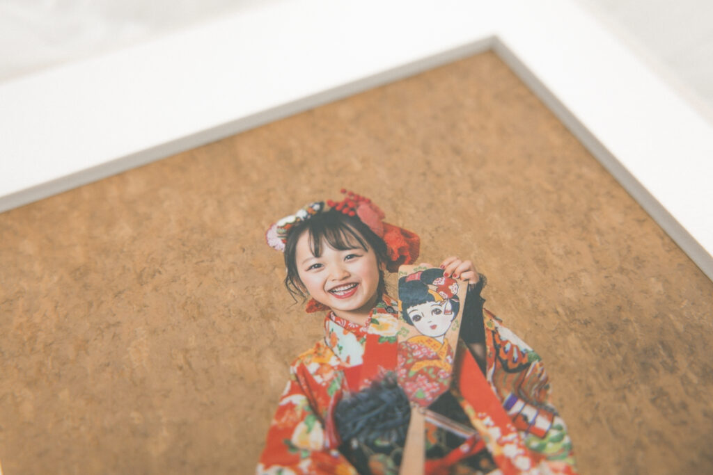 また、プリントには高品質な銀塩仕上げを採用し、色の再現性や階調表現にも妥協がありません。肌の質感や衣装の細部まで美しく描写され、時間が経っても色褪せにくい品質で、大切な記念を長く残すことができます。七五三やバースデー、記念撮影など、特別なシーンにふさわしいクオリティです。